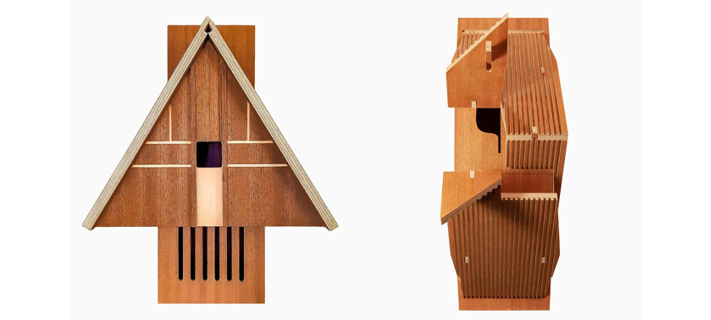 Founded in 2021, Chirp’s pieces are inspired by iconic architects like Le Corbusier, Frank Lloyd Wright, Zaha Hadid and Frank Gehry, and the birdhouses reflect clean lines, honest materials and minimalist design, available as kits or pre-assembled objects made from durable mahogany and plywood.