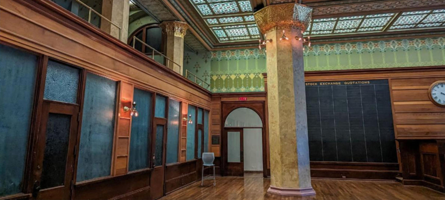 The Chicago Stock Exchange Trading Room, now used as an event space at the museum, features stained-glass skylights and intricate wall stenciling. After nearly 50 years in the museum, Preservation Chicago said, the room is now at risk of demolition again for a proposed new wing at the museum.